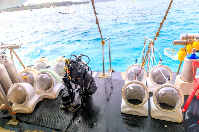 헬멧 다이빙으로 편하고 안전하게 아름다운 보라카이 바닷속을 탐험하고, 패러세일링을 타고 보라카이 바다 위로 날아보세요. 헬멧다이빙은 체험다이빙이 무섭고 걱정되시는 분들에게 추천해드리며, 아주 간단한 기초 교육으로 바로 바닷속으로 들어가 아름다운 열대어와 산호를 감상할 수 있는 워터 액티비티입니다. 헬멧 다이빙 후에는 패러세일링을 타고 바다 위에서 아름다운 보라카이의 바다를 한눈에 담아보세요.